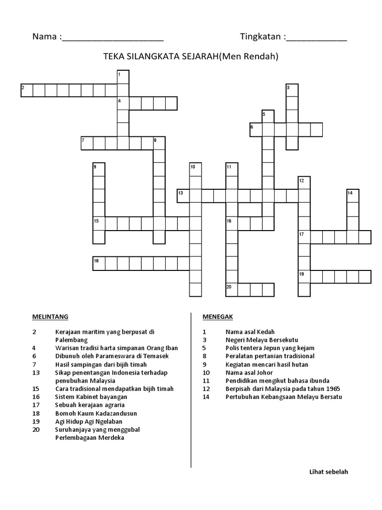 Bermacam Teka Silang Kata Sejarah Tingkatan 1 Yang Sangat Berguna Untuk Para Guru Lihat Pekeliling Terbaru Kerajaan